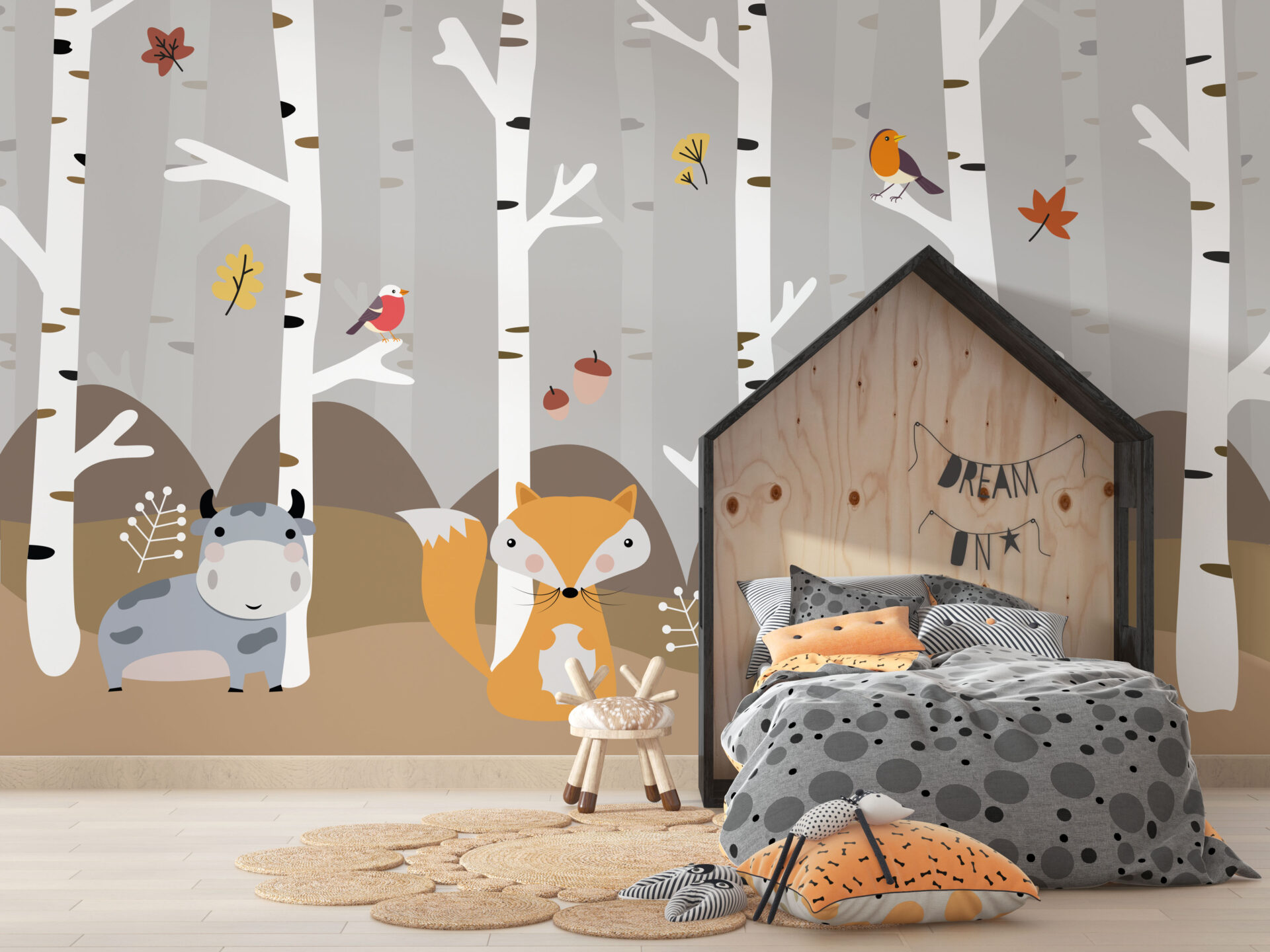Veselý zvířecí motiv se skvěle hodí do prostoru připraveného pro dítě. Takový design vytvoří zajímavě vypadající užitný prostor, ve kterém může dítě chtít zůstat. Při výběru nástěnné malby je třeba zohlednit také způsob jejího zhotovení. Dekorace vytvořené v užitném prostoru, který používá dítě, by měly být trvanlivé. Tím se snižuje riziko poškození, které si vyžádá změny. Nástěnná malba se zvířaty mezi břízami je vysoce kvalitní výrobek.
