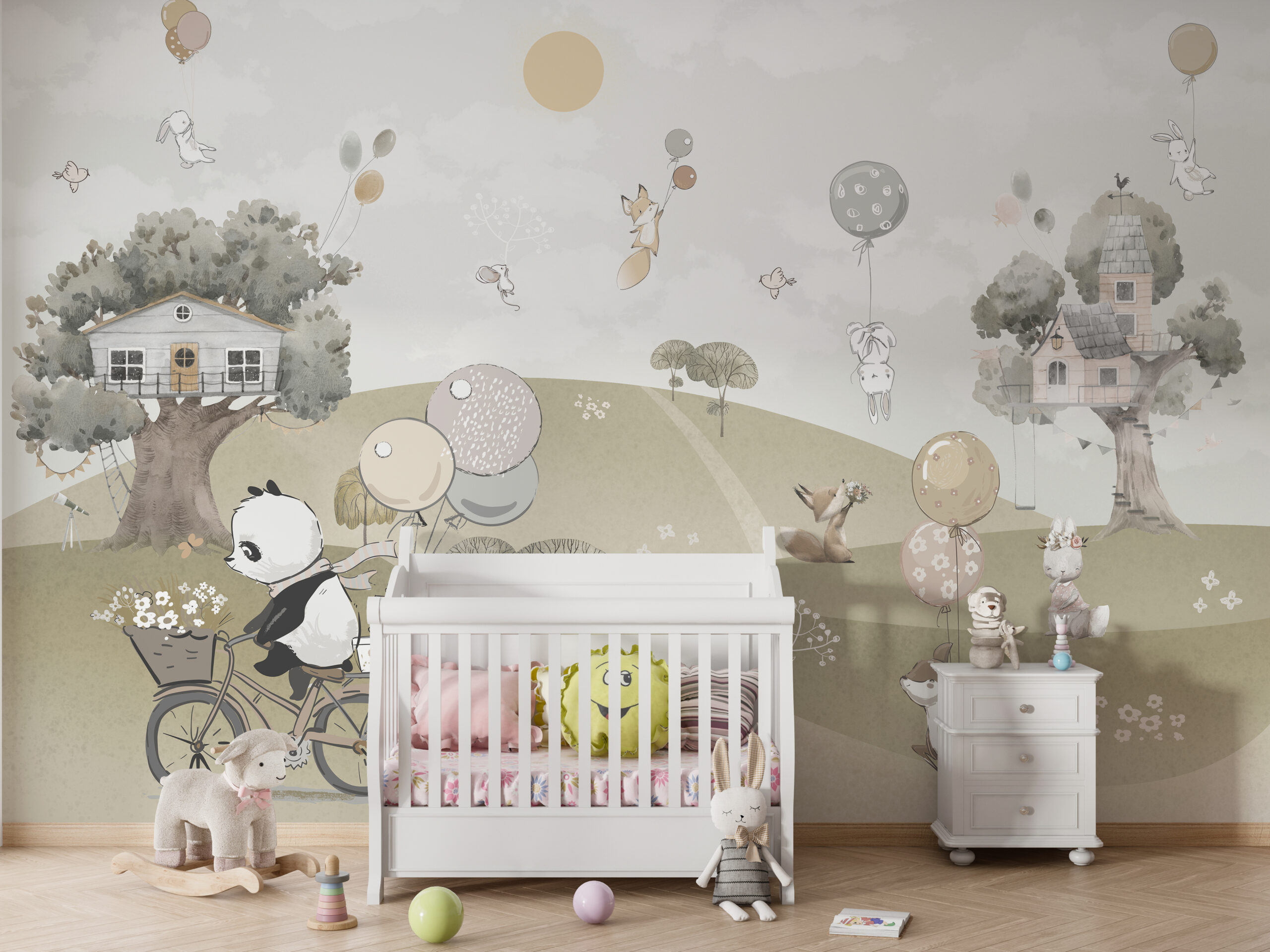 Domky na stromech jsou symbolem dětských snů a bezstarostného dětství. S touto fototapetou se můžete přenést do světa dětské fantazie, i když jste doma. Hodí se jak do dětského pokoje, tak do obývacího pokoje nebo ložnice, kde dodá místnosti jedinečný charakter.