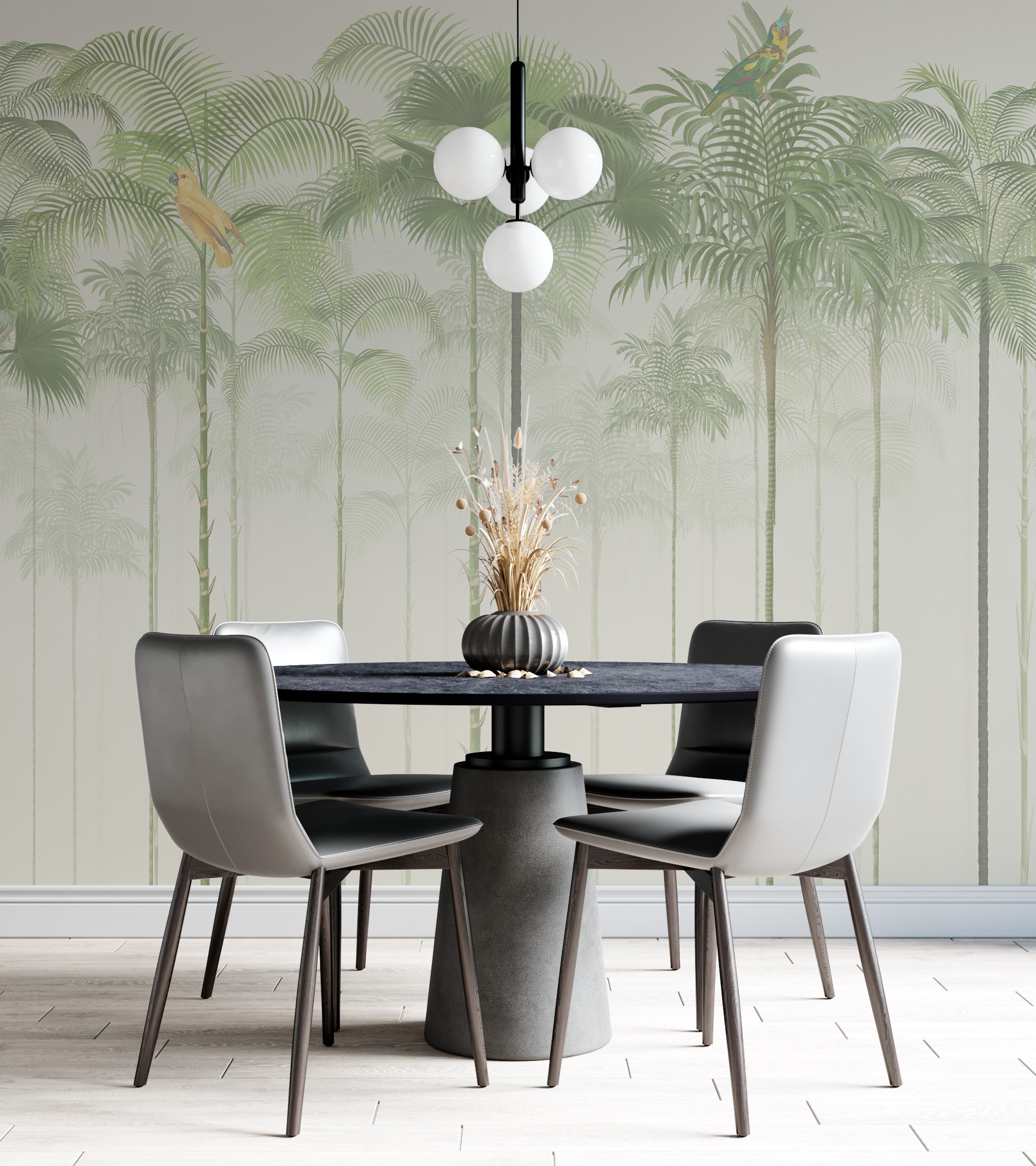Nástěnné malby papoušků na palmách
