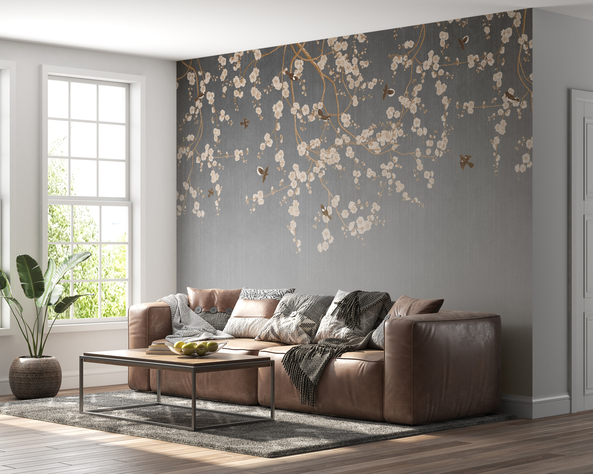 Objednejte si nástěnnou malbu Cherry Blossom On Grey Background ještě dnes a vytvořte ve svém domově jedinečnou atmosféru!