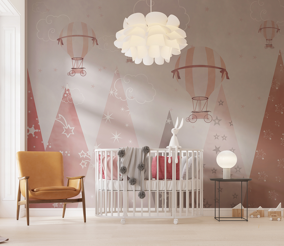 Tapeta Balónky v růžových horách – barevná dekorace do dětského pokoje!