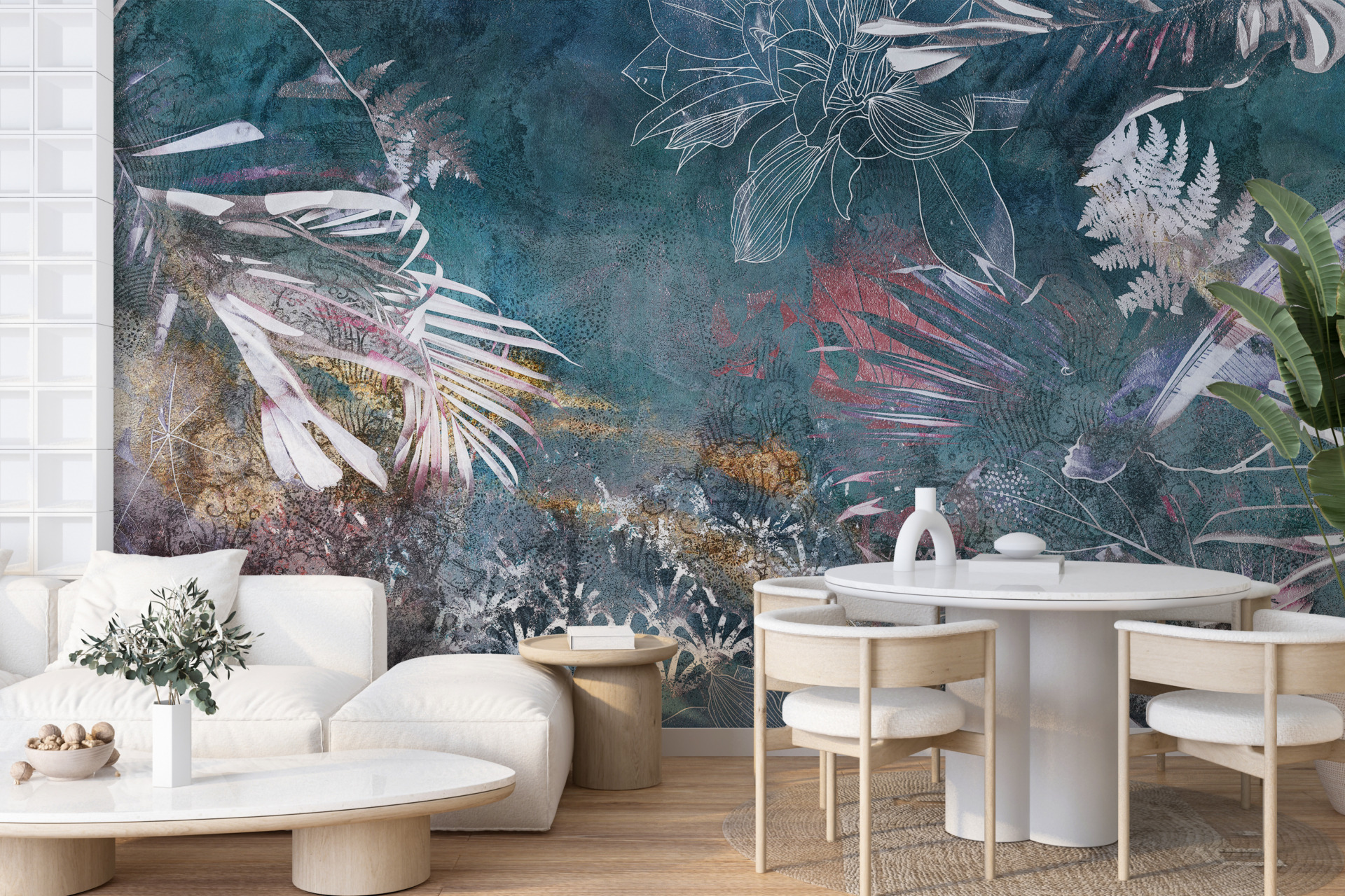Abstraktní květinový motiv na této fototapetě dodá vašemu interiéru jedinečný styl a učiní ho jedinečným. Květinové prvky v kombinaci s abstraktními formami vytvářejí zajímavou kompozici, která upoutá pozornost a dodá místnosti hloubku.