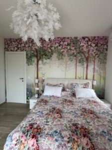 Tato tapeta zcela proměnila atmosféru v ložnici.